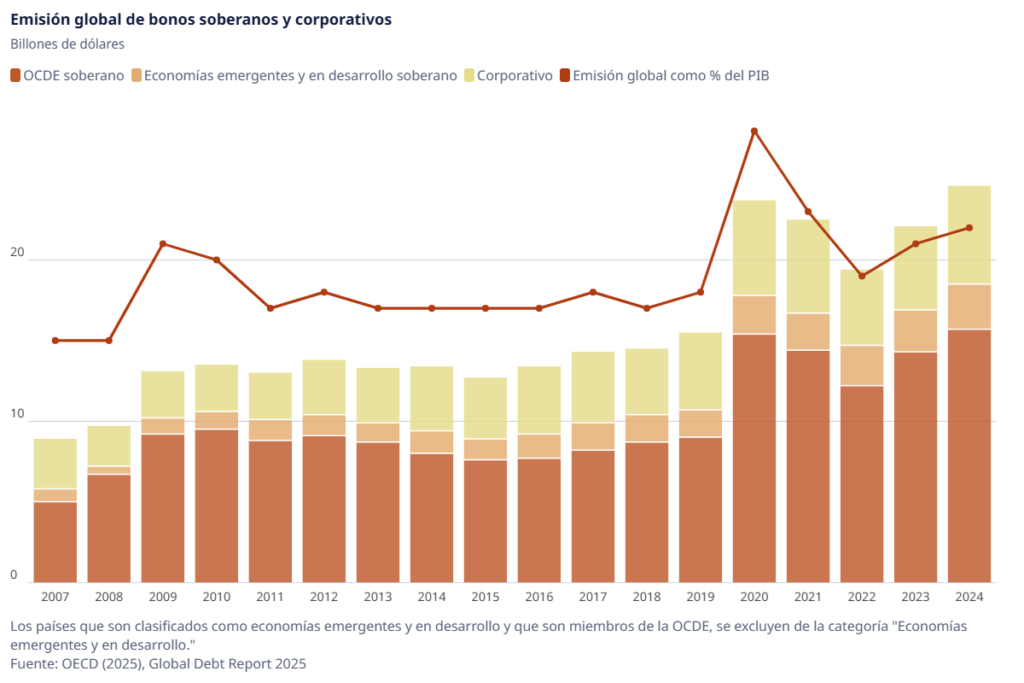 El informe de la OCDE titulado OECD Global Debt Report 2025: Financing Growth in a Challenging Debt Market Environment indica que se prevé que los niveles de deuda sigan aumentando en 2025, y que la ratio agregada de deuda negociable de los gobiernos centrales sobre el PIB de los países de la OCDE alcance el […]