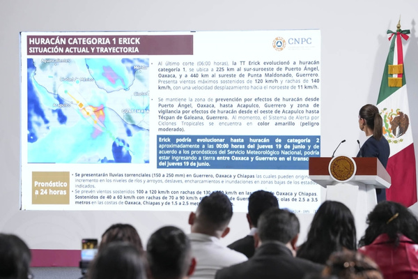 Presidenta Sheinbaum emite recomendaciones ante llegada de huracán Erick