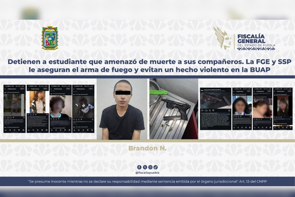 Detienen a estudiante que amenazó de muerte a sus compañeros de la BUAP
