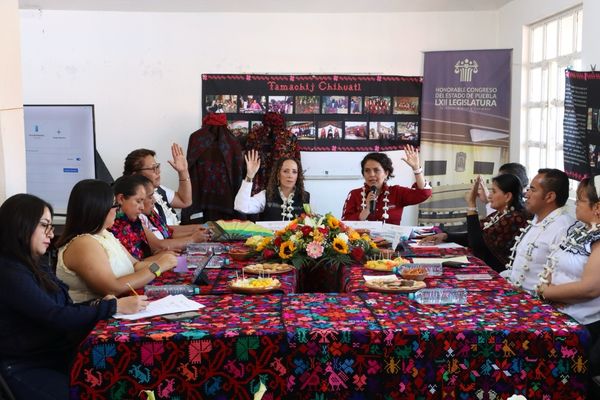 Durante la sesión se contó con la presencia del presidente municipal de Hueyapan, Alfonso Lino Pozos, así como de mujeres bordadoras de la región que han dedicado su vida a preservar y difundir su labor artesanal.