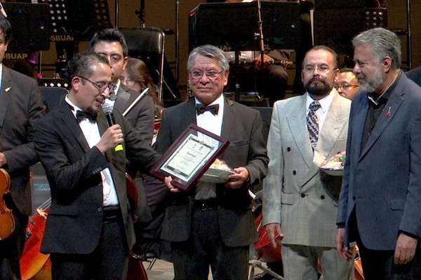 Uno de los momentos más emotivos ocurrió cuando la misma Orquesta sorprendió al director del Complejo Cultural Universitario y uno de los impulsores de la OSBUAP, Flavio Guzmán Sánchez, entregándole un reconocimiento por su visión, apoyo y entrega a lo largo de estos años.