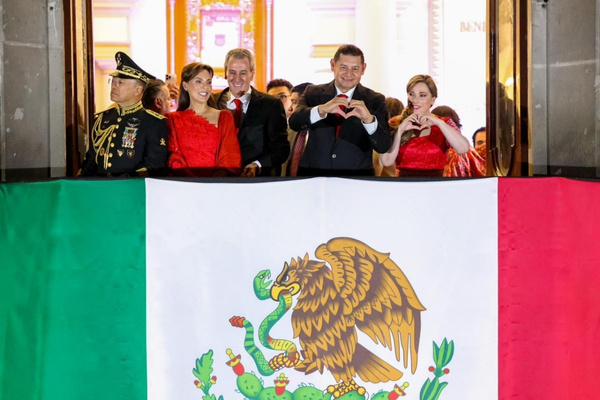 CIUDAD DE PUEBLA.- En un ambiente de paz, de unión familiar y profundo orgullo patrio, desde Palacio Municipal, el gobernador de Puebla, Alejandro Armenta, presidió la Ceremonia del 215 Aniversario del Grito de Independencia, acompañado por su esposa, Ceci Arellano; el presidente municipal, José Chedraui Budib, y su esposa Mari Elise Budib.