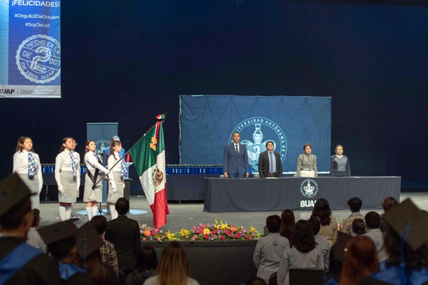 CIUDAD DE PUEBLA.- La Rectora Lilia Cedillo Ramírez acudió como madrina de generación, 2022-2025, de 745 alumnos que concluyeron sus estudios en la Preparatoria 2 de Octubre de 1968.