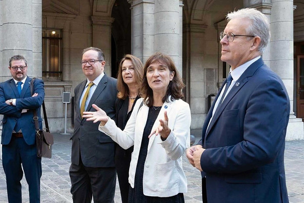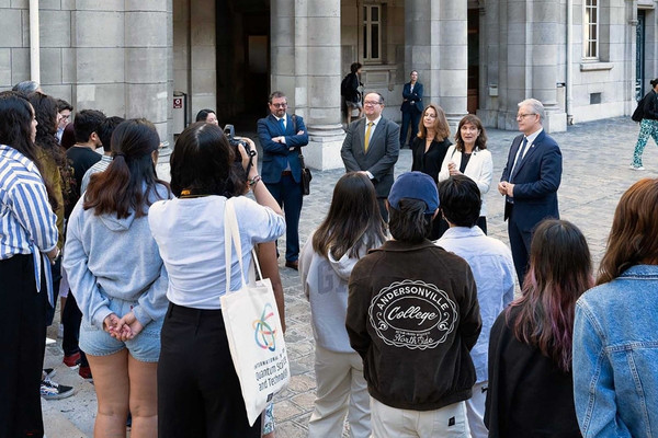 Guillaume Fiquet, vicepresidente de Asuntos Internacionales; Béatrice Pérez, decana de la Facultad de Humanidades; Samantha Chareille, directora de Asuntos Internacionales y Europeos de la Universidad de la Sorbona; y David Marcilhacy, profesor de Historia y Civilización Contemporáneas, en la Facultad de Humanidades.