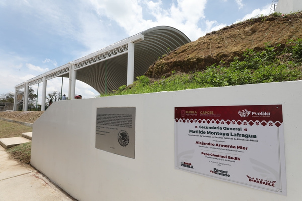 CIUDAD DE PUEBLA.- En cumplimiento al compromiso de coadyuvar al fortalecimiento de la educación en la capital, el presidente municipal, Pepe Chedraui Budib entregó el techado escolar con sistema de captación pluvial de la Secundaria General Matilde Montoya Lafragua en el fraccionamiento Bosques de Chapultepec, el cual beneficiará a más de 120 alumnos de educación básica.