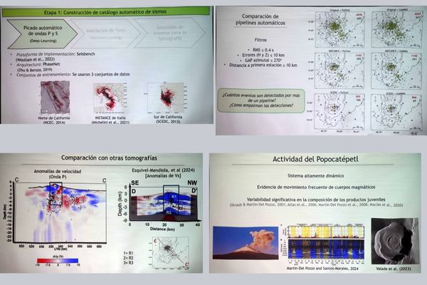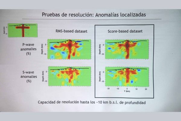 Detalló que ha trabajado con un modelo de computación al cual le “enseñó” a diferenciar y reconocer distintos tipos de temblores del volcán; a partir de ello se elaboró la tomografía de las estructuras internas. Estas, precisó, equivalen a 30 kilómetros por debajo del nivel del mar, es decir, casi llegando al mando de la Tierra.
