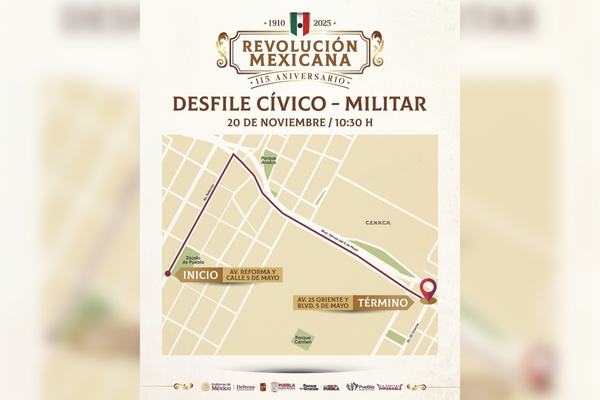 CIUDAD DE PUEBLA.- Con la participación de 3 mil 400 alumnos de educación obligatoria y superior, este jueves 20 de noviembre se llevará a cabo el desfile cívico -militar “Conmemorativo al 115 Aniversario de la Revolución Mexicana”, con el objetivo de recordar el inicio de un movimiento histórico que transformó la estructura política y social del país.