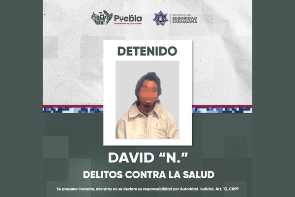 CIUDAD DE PUEBLA.- El Gobierno de la Ciudad que encabeza el presidente municipal Pepe Chedraui, a través de la Secretaría de Seguridad Ciudadana (SSC), informa la detención de David “N”, al encontrarse cometiendo una falta administrativa y por tener en su posesión bolsas que contenían aparentemente droga conocida como marihuana; por lo que fue puesto a disposición de la autoridad ministerial.