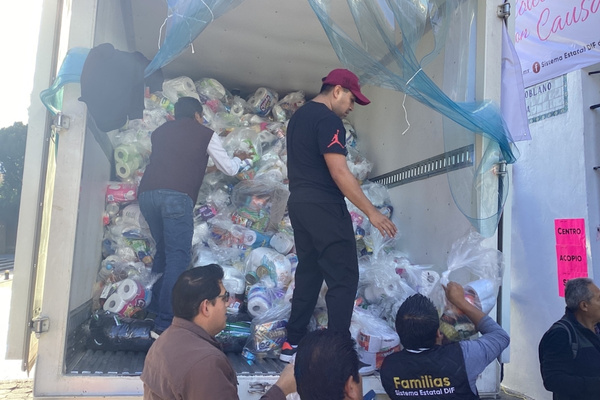 CIUDAD DE PUEBLA.- Desde el centro de acopio, el Sistema Estatal para el Desarrollo Integral de la Familia (SEDIF) informa que en las últimas 24 horas salieron dos camiones con víveres y productos de primera necesidad, como despensas, papel higiénico, ropa, zapatos, artículos de higiene personal y de limpieza para las y los damnificados de la Sierra Norte.