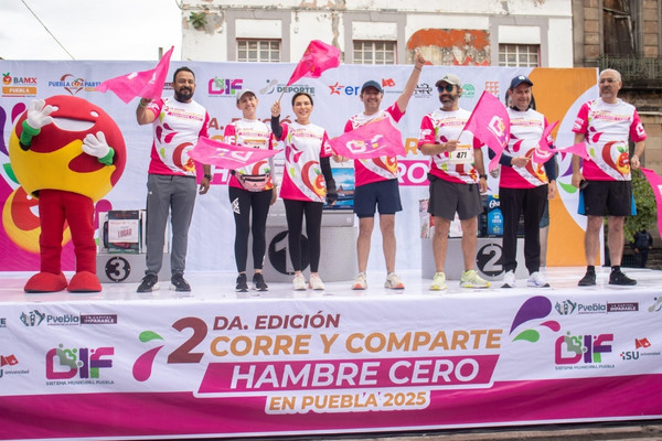 CIUDAD DE PUEBLA.- Unidos por la solidaridad, la empatía y el compromiso, cientos de corredoras y corredores se sumaron a la carrera “Corre y Comparte: Hambre Cero 2025”, cuyo banderazo de salida fue encabezado por la presidenta del Patronato del DIF Puebla Capital, MariElise Budib.