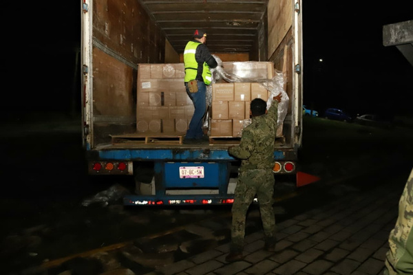 HUAUCHINANGO, PUEBLA.- La madrugada de este sábado llegaron al municipio de Huauchinango, las 2 mil despensas que fueron enviadas por el Gobierno de la Ciudad, que encabeza el presidente municipal, Pepe Chedraui, a través del DIF Puebla Capital que dirige su presidenta del Patronato MariElise Budib.