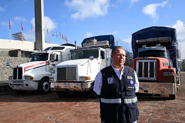 El universitario supervisó la salida de tres camiones con víveres y enseres donados en el Centro de Acopio Comunidad UNAM Solidaria, los cuales serán entregados a la Benemérita Universidad Autónoma de Puebla, institución que se encargará de su distribución.