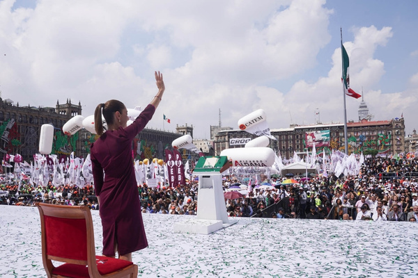 CIUDAD DE MÉXICO.- Como la primera mujer Presidenta, la Jefa del Ejecutivo Federal, Claudia Sheinbaum Pardo, reafirmó que, México va por el camino correcto, esto durante el cierre de su gira nacional de rendición de cuentas con motivo de su primer año de Gobierno, ante miles de mexicanas y mexicanos reunidos en el Zócalo de la Ciudad de México.