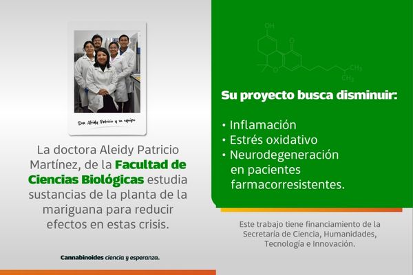 En la BUAP, la doctora Aleidy Patricio Martínez, adscrita a la Facultad de Ciencias Biológicas de la BUAP, junto con su equipo de trabajo, estudia sustancias que se encuentran en la planta de la mariguana y que pueden reducir algunos efectos en las crisis epilépticas, específicamente en la inflamación, estrés oxidativo y neurodegeneración.