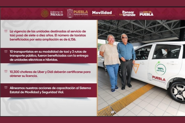CIUDAD DE PUEBLA.- El Gobierno de Puebla, encabezado por Alejandro Armenta, anunció acciones decisivas que dejan atrás más de 12 años de abandono en materia de movilidad, por ello presentó un apoyo directo de hasta 20 por ciento para el enganche de unidades híbridas, eléctricas o de bajas emisiones, destinado a concesionarios y permisionarios con vehículos modelo 2015 o anteriores.