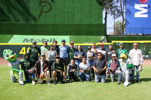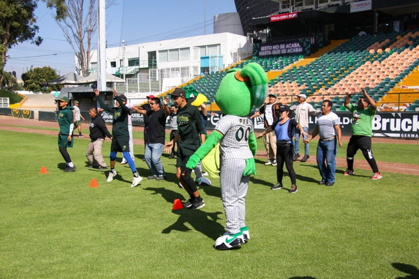 Durante la actividad, personal del IMDP participó en dinámicas de calentamiento, técnicas de lanzamiento y cacheo, promoviendo la práctica del béisbol y el bienestar físico.