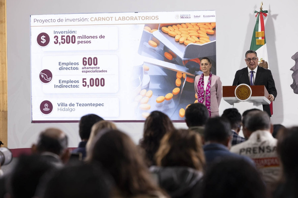CIUDAD DE MÉXICO.- Como parte del Plan México, la presidenta Claudia Sheinbaum Pardo anunció la inversión de 12 mil millones de pesos de la industria farmacéutica para las áreas de producción y desarrollo de investigación en el país.