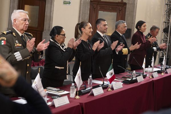 La gobernadora y los gobernadores de Aguascalientes, María Teresa Jiménez; de Coahuila, Manolo Jiménez Salinas; y de Nuevo León, Samuel García Sepúlveda, reconocieron los resultados de la Estrategia Nacional de Seguridad, los cuales se han visto reflejados en cada una de las entidades federativas y agradecieron el apoyo del Gabinete de Seguridad del Gobierno de México; mientras que el gobernador de Michoacán, Alfredo Ramírez Bedolla, celebró este acuerdo para homologar en los estados el marco normativo para combatir la extorsión.