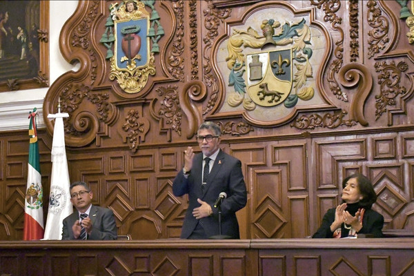 En este emblemático recinto del Edificio Carolino, el vicerrector de Investigación y Estudios de Posgrado, Ygnacio Martínez Laguna -en representación de la Rectora Lilia Cedillo Ramírez-, el director de la Facultad de Ciencias Químicas, Henoc Flores Segura, y la señora María Jacobo, encabezaron este homenaje, donde rindieron homenaje a una extraordinaria persona y científico notable, que siempre creyó, con convicción, que la ciencia puede y debe mejorar la vida de las personas.