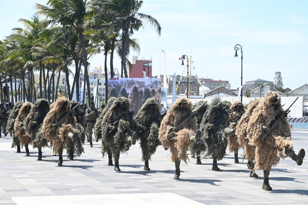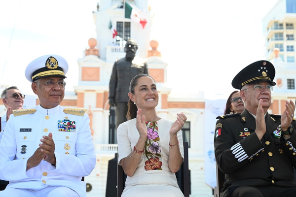 “La soberanía no es herencia fácil ni dádiva pasajera, la soberanía se conquista, se protege y se defiende día tras día. Y para ello, para defender la soberanía se necesitan valores, en las personas y en las instituciones. Las Fuerzas Armadas mexicanas las tienen, el honor que obliga a vivir con rectitud y a saber que cada acción representa México; la lealtad, que significa fidelidad absoluta al pueblo y a la patria; el deber, que empuja a cumplir la misión sin vacilación; el patriotismo, que es amor a la nación expresado en entrega y sacrificio; y la honestidad, que es la base que da sentido y fuerza a todos los demás valores, porque sin ella nada perdura”, destacó.