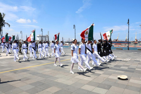 La Presidenta, en compañía de miembros de su Gabinete legal y ampliado, así como de los representantes del Poder Legislativo y Judicial, presenció el Desfile Conmemorativo de los 204 años del nacimiento de la Armada de México y los 201 años de la promulgación de la Constitución de 1824, en el que participaron 3 mil 871 efectivos de la Secretaría de Marina-Armada de México: mil 275 elementos mujeres y 2 mil 596 hombres; con 15 banderas de guerra, 10 estandartes, 41 guiones, ocho unidades de superficie, 24 unidades aeronavales, 24 embarcaciones menores, 70 vehículos operativos, 11 vehículos de apoyo con remolque, ocho camas temáticas, 38 caninos, ocho botargas y un Turibús con 25 niños.