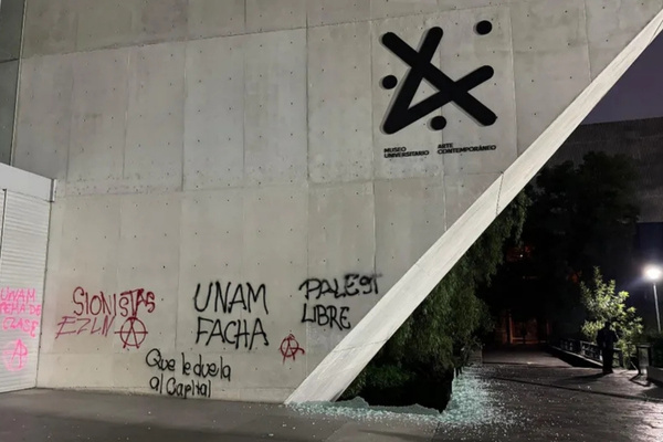 Esta tarde un grupo de personas que actuó con violencia se desprendió del contingente de manifestantes que participaban en una protesta contra la gentrificación y se redirigió hacia Ciudad Universitaria en donde destruyeron casetas de vigilancia, dañaron el Museo Universitario Arte Contemporáneo (MUAC) y la librería Julio Torri, instalaciones emblemáticas que promueven la reflexión, el arte y la literatura.