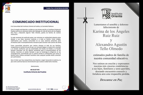 Ante lamentable noticia el Instituto Oriente en un comunicado expresó su solidaridad y pésame a los 3 hijos de la pareja, a quienes darán todo el apoyo y acompañamiento necesario para transitar este camino de duelo.