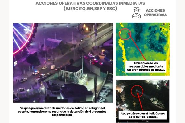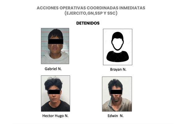En posicionamiento interinstitucional, de la Secretaría de Seguridad Ciudadana (SSC), Secretaría de Seguridad Pública (SSP) del Estado, Ejército y Guardia Nacional, se informó que se logró la detención de cuatro probables responsables, además, fueron aseguradas, en distintos puntos, dos motocicletas, que podrían estar relacionadas con los hechos.