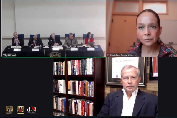 Durante la sesión dedicada al tema “Riesgos y amenazas para la Seguridad de América del Norte”, Craig A. Deare, profesor del College of International Security Affairs, National Defense University, recordó que en las negociaciones con EUA es importante considerar la historia compleja de varias intervenciones al territorio por parte de Estados Unidos, las cuales han marcado la diplomacia entre las dos naciones, especialmente de 1991 a la fecha.