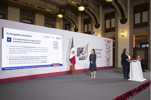 “Hemos estado trabajando en lo que mencioné el día de ayer, que es que en todos los estados de la República sea delito penal el acoso: cómo se tiene que hacer eso; cómo; quién debe participar; qué es lo que estamos haciendo. Y, además, de una campaña que —como les comenté— vamos a desarrollar a partir del 25 de noviembre, que justamente es el Día contra la violencia hacia las mujeres”, comentó en la conferencia matutina: “Las mañaneras del pueblo”.