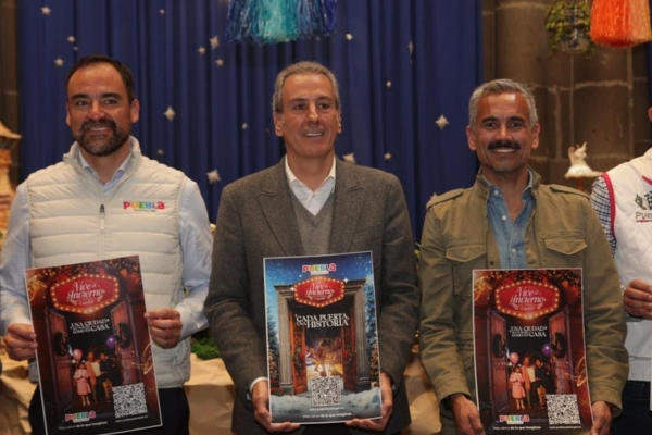 CIUDAD DE PUEBLA.- Con el objetivo de que la capital poblana continúe posicionándose como epicentro turístico, el presidente municipal, Pepe Chedraui Budib, presentó la cartelera de actividades de Vive la Navidad en Puebla 2025 por segundo año consecutivo.