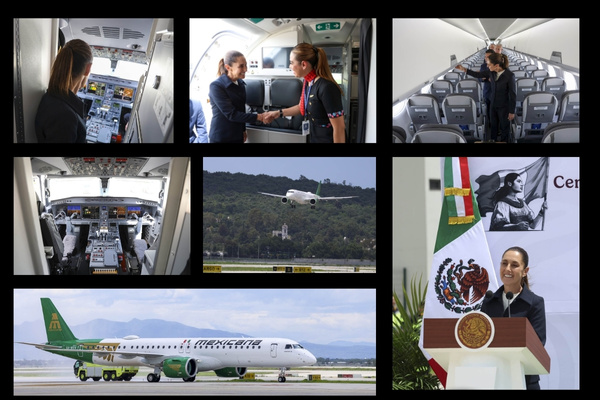 Presidenta Sheinbaum recibe primer avión Embraer E195-E2 de Mexicana