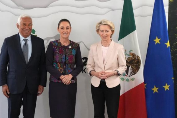 La presidenta Claudia Sheinbaum Pardo sostuvo una reunión con el presidente del Consejo Europeo, António Costa, y con la presidenta de la Comisión Europea, Ursula von der Leyen, para dialogar sobre la actualización del tratado comercial entre México y la Unión Europea.