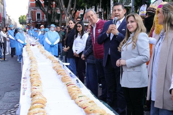 CIUDAD DE PUEBLA.- La meta se cumplió. Puebla capital logró escribir su nombre en el Guinness World Records con el título de la “línea de panes más larga del mundo”, con 19 mil 010 piezas que juntas formaron la rosca de Reyes de alrededor de 6 kilómetros.