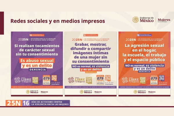 El gobierno federal anunció un amplio calendario de acciones territoriales para los 16 días de activismo, con actividades en municipios, colonias, centros libres y escuelas. Estas incluyen entregas masivas de la Cartilla de Derechos de las Mujeres, convenios con plataformas digitales para movilidad segura, cine-debates, caminatas para detectar riesgos urbanos, murales comunitarios, capacitaciones y encuentros nacionales. Con la firma del compromiso, las y los gobernadores consolidan una agenda conjunta para garantizar espacios seguros, justicia efectiva y una vida libre de violencia para todas las mujeres del país.