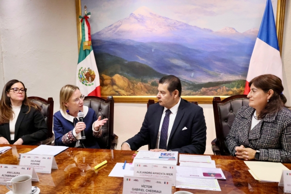 CIUDAD DE PUEBLA.- En el marco de una reunión encabezada por el Gobernador Alejandro Armenta y la Embajadora de Francia en México, Delphine Borione, autoridades de ambos países reafirmaron su compromiso de fortalecer los lazos de cooperación bilateral con acciones concretas en materia educativa, tecnológica, cultural y económica, alineadas con el Plan México y el Plan Francia 2030.