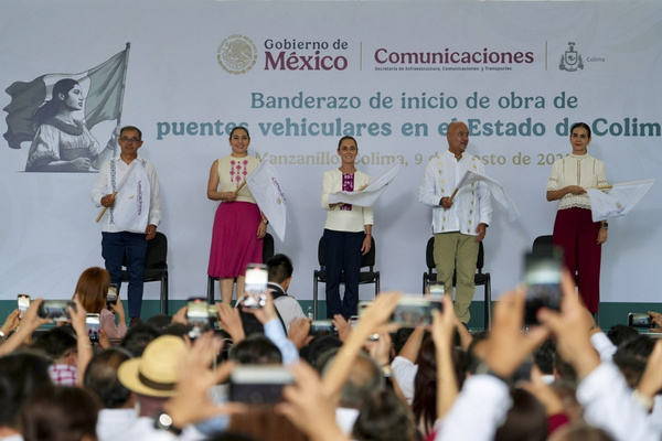 - “Manzanillo ya es el tercer puerto de América Latina, pero lo vamos a hacer el primero”, afirmó la presidenta Claudia Sheinbaum Pardo al dar inicio a la construcción de puentes vehiculares afectados por el huracán Lidia en Colima