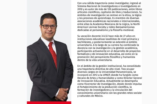El Dr. Jorge Medina, actualmente Vicerrector de Investigación, es filósofo, pedagogo e investigador mexicano, reconocido por su trabajo en ética, filosofía y educación. Cuenta con una amplia trayectoria académica, incluyendo doctorados en Filosofía y Educación, y ha sido autor de más de 120 publicaciones.