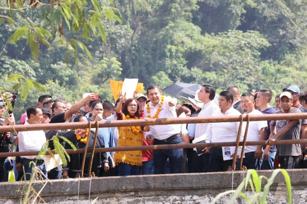 Acompañado por la coordinadora general de Asuntos Intergubernamentales y Participación Social del Gobierno de México, Leticia Ramírez Amaya, en representación de la presidenta de México, Claudia Sheinbaum, el mandatario estatal constató las afectaciones causadas por el aumento del caudal. También escuchó a la población, con quienes se comprometió a otorgarles apoyo y reafirmó el compromiso del Gobierno del Estado para garantizar la seguridad de la población, así como restablecer la conectividad vial en la zona.