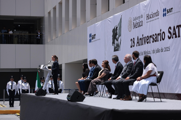CIUDAD DE MÉXICO.- La presidenta Claudia Sheinbaum Pardo encabezó la conmemoración del 28 aniversario del Servicio de Administración Tributaria (SAT), desde las oficinas de Paseo de la Reforma de la Ciudad de México.