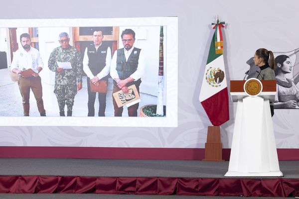 La primera mandataria estuvo acompañada del secretario de Marina, almirante Raymundo Pedro Morales Ángeles; el subsecretario de Derechos Humanos, Población y Migración de la Secretaría de Gobernación, Félix Arturo Medina Padilla; el director general del IMSS Bienestar, Alejandro Svarch Pérez; y el director general del IMSS, Zoé Robledo Aburto.