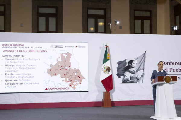 CIUDAD DE MÉXICO.- La Presidenta de México, Claudia Sheinbaum Pardo, informó que envió responsables a las zonas afectadas de Veracruz, Hidalgo, Puebla, Querétaro y San Lui Potosí, con la finalidad de continuar con la coordinación entre el Gobierno Federal, los estados y los municipios, para atender la emergencia tras las lluvias extraordinarias.