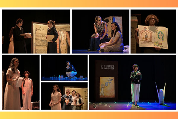 SAN ANDRÉS CHOLULA, PUEBLA.- La UDLAP presentó en el Auditorio Guillermo y Sofía Jenkins, la obra de teatro Pliegues de sabiduría, una creación original que reafirma el compromiso de la institución educativa con el arte escénico como espacio de reflexión y transformación social. Esta obra fue escrita por las egresadas Alexa Resalez (Teatro) y Kassandra Resalez (Danza), dirigida por Cristóbal Meza Alonso, también egresado de Teatro de la UDLAP, y desarrollada como parte de una colaboración con la Organización de Estados Iberoamericanos (OEI).