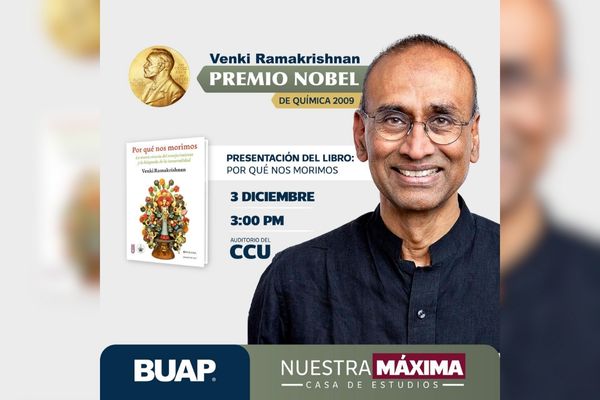 CIUDAD DE PUEBLA.- En las últimas décadas, cada vez más la ciencia se acerca al conocimiento sobre los fundamentos del envejecimiento. Para compartir con los universitarios estas reflexiones, Venki Ramakrishnan, Premio Nobel de Química 2009, estará en la BUAP este 3 de diciembre para presentar su libro ¿Por qué morimos? La cita es a las 15:00 horas, en el auditorio del Complejo Cultural Universitario.