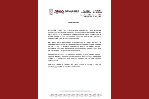 CIUDAD DE PUEBLA.- La Secretaría de Educación del Estado de Puebla ha anunciado que se